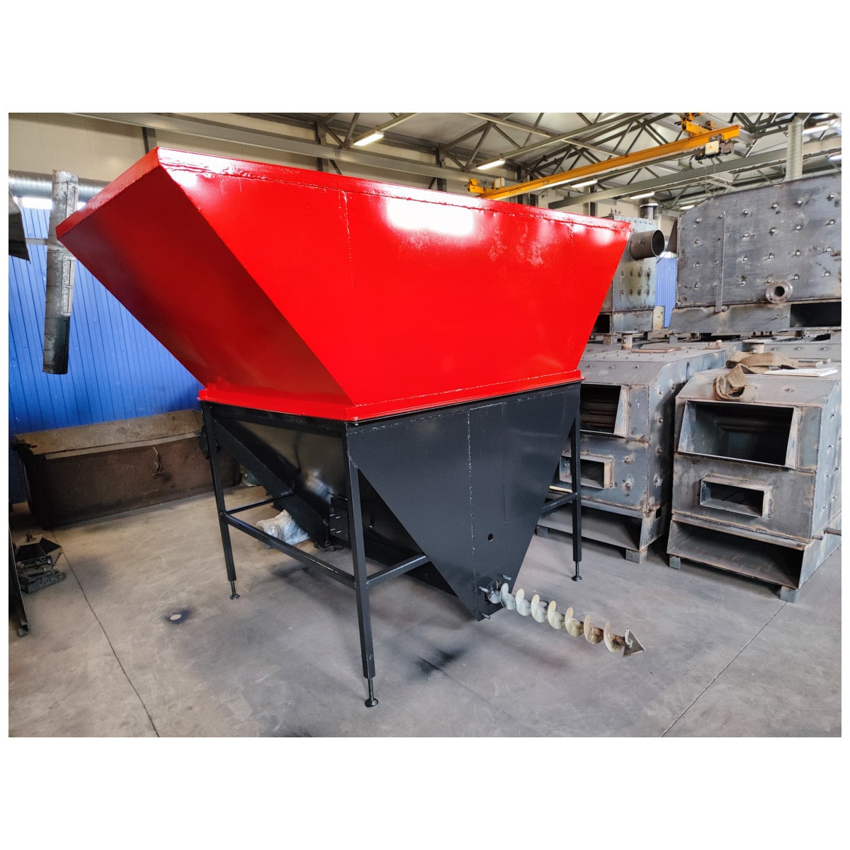 Котел КСТБ–95 в сборе. Комплектация: манометр с бобышкой, термометр с муфтой, предохранительный клапан 3BAR, контроллер для твердотопливного котла торговой марки TECH с управлением двумя насосами: контура горячей воды и ЦО, вентилятор наддува, шнек, реверс шнека, горелка, бункер (объемом 2,1м³), регулируемая высота ножек бункера, мотор-редуктор, термостатический клапан пожаротушения, датчик наличия топлива в бункере, оборудован световой-звуковой сигнализацией, датчики (в т.ч. защита) на перегрев теплоносителя и на возгорание топлива в шнеке, температурные датчики, толщина стенки котла 5мм, футеровка горелки котла, комплект эксплуатационных документов (руководство по эксплуатации, паспорт).
